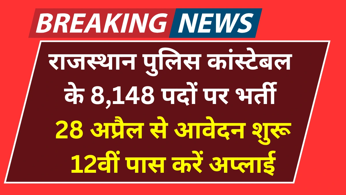 Rajasthan Police Constable Recruitment 2025: राजस्थान सरकार के अधीन राजस्थान पुलिस विभाग ने राज्य भर में कांस्टेबल (Constable) पदों पर भर्ती के लिए बड़ा नोटिफिकेशन जारी किया है। इस भर्ती अभियान के तहत कुल 8,148 रिक्त पदों को भरा जाएगा। यह भर्ती युवाओं के लिए सुनहरा अवसर है जो सरकारी नौकरी की तैयारी कर रहे हैं। भर्ती के लिए आवेदन प्रक्रिया 28 अप्रैल 2025 से शुरू होगी। इच्छुक अभ्यर्थी वेबसाइट पर जाकर ऑनलाइन आवेदन कर सकते हैं।